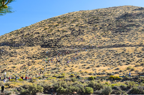 All of the "ants" running up the steep slope at the start of the race. Caleb is one of those tiny specks! |