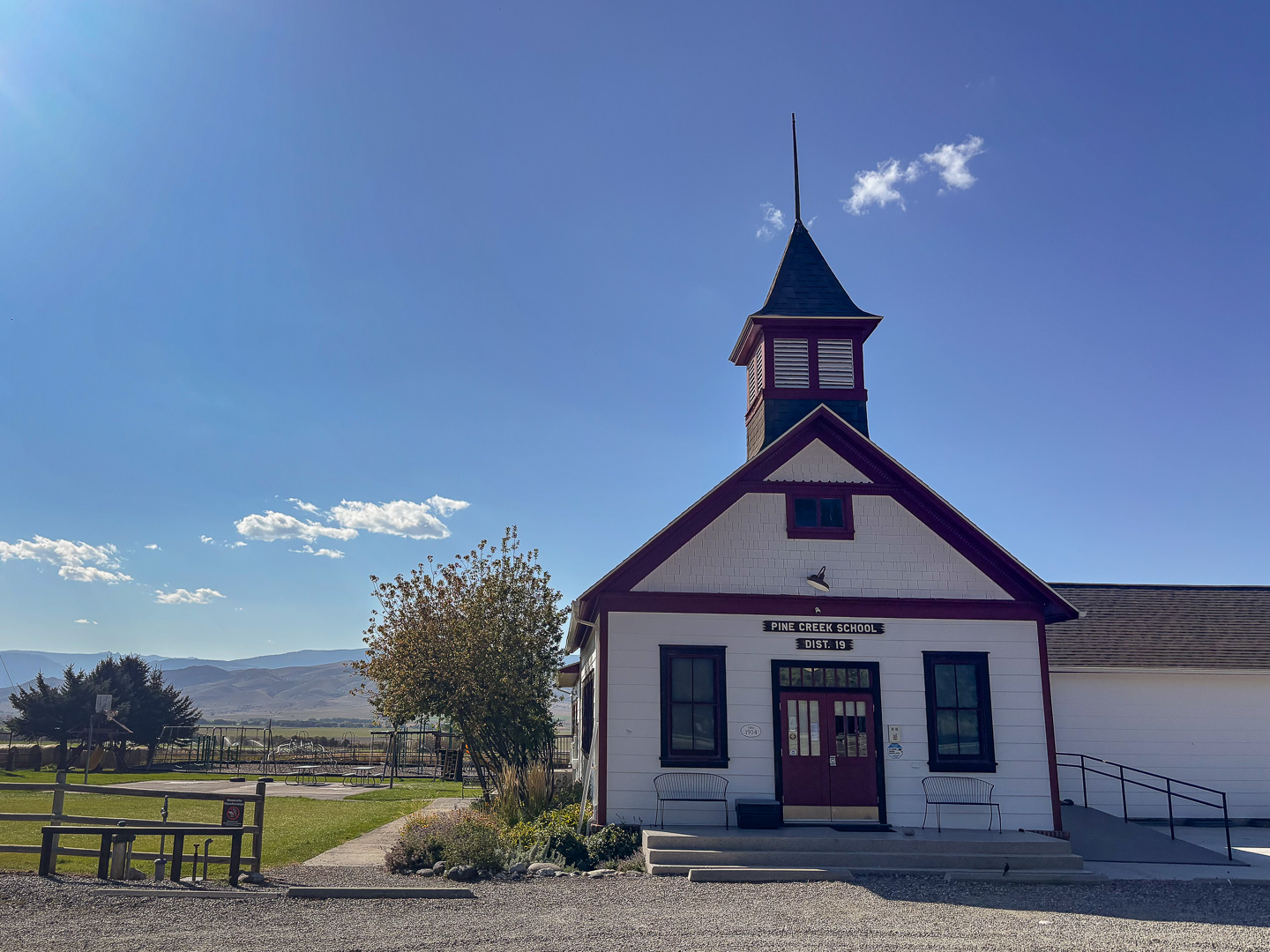 This is a picture of the Pine Creek Elementary School on the east side of the Yellowstone River in the Paradise Valley. It is a reminder of when small, rural schools were more the rule than the exception they are now. |
