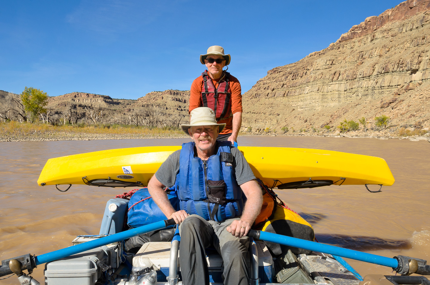 This fall Bob also got to enjoy another wonderful seven day river trip from October 16th through October 22nd down the Green River in central Utah through Desolation and Gray Canyons. River trips have been one of our favorite outdoor adventures and this trip was no exception. In this picture Bob is joined with our good friend Phil Spargo who took his kayak to paddle alongside the rafts. It's a great way to go to do some remote kayaking and let the rafts carry all your gear. For a full write up and pictures of this trip, make sure to visit our Desolation and Gray Canyon River Trip page. |