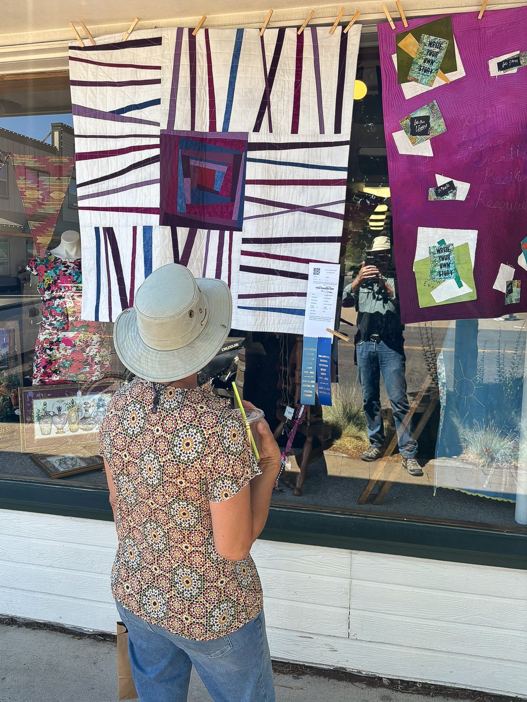 We enjoyed walking around the quaint town with 10,000 other attendees to check out the 1200+ quilts hanging from almost every available wall, eve, and porch in town. |