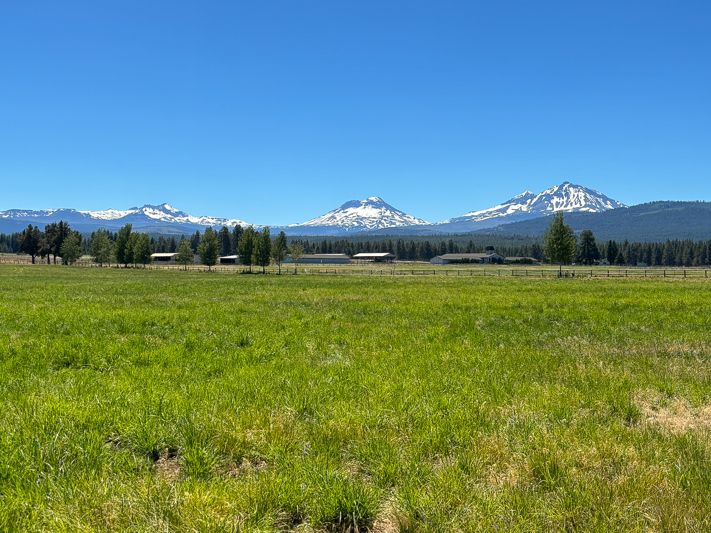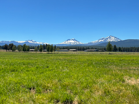 Sisters Oregon is a beautiful place and named for it's location in the foothills of the Three Sisters volcanic peaks that can be seen in the background of this picture. |