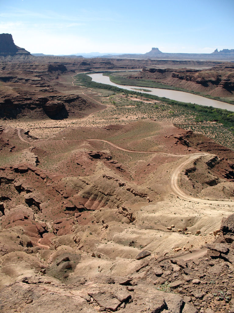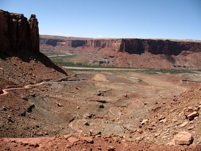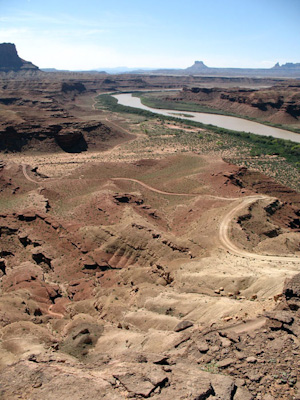 The White Rim road lies on this white layer of sandstone as it makes its way around the Island in the Sky District of Canyonlands National Park.