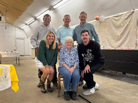 Here's a picture of Dylan and Michelle on either side of Grandma, along with Bob and his brothers Dave and Jim. It was a really great time!! |