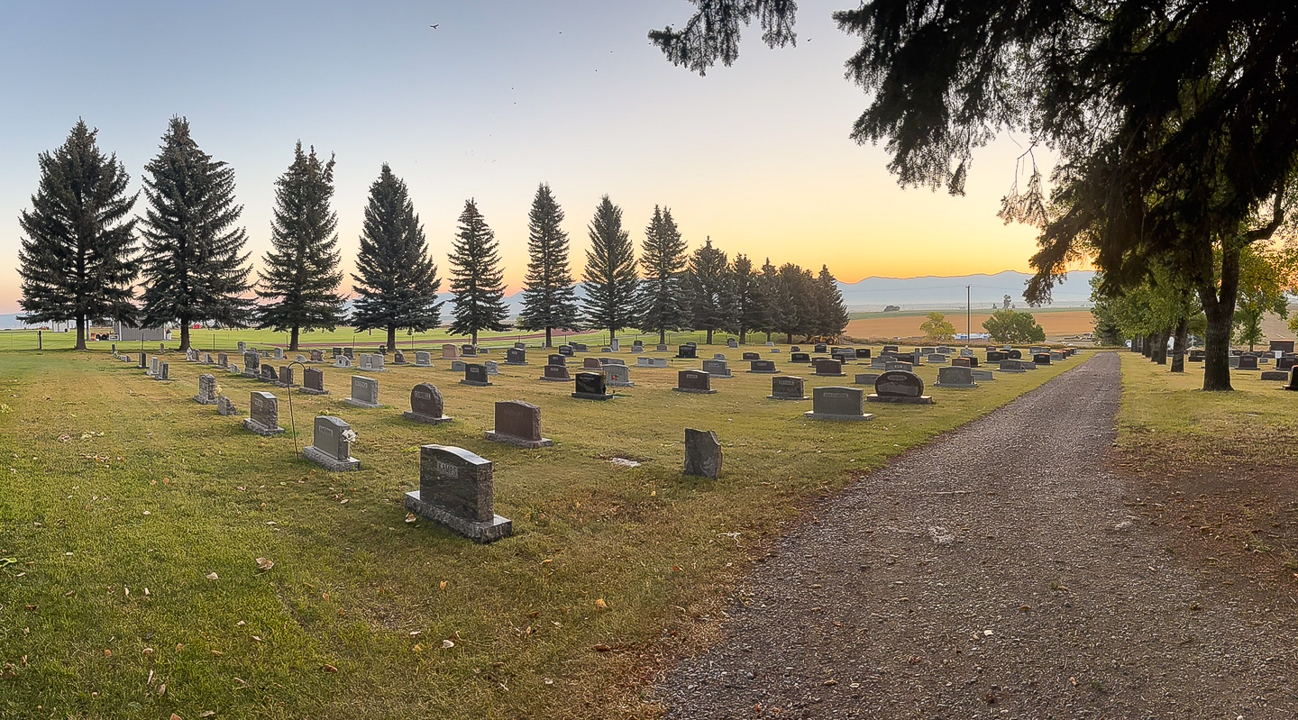 Every time we visit Montana we have to stop by the Churchill Cemetery to see where Grandpa Potts now rests. Pretty amazing the sunrise that all those resting there get to face every morning. There's a full writeup about Bob's Dad and the time we had with him in the last couple months before he passed and the memorial service we had for him about a third of the way down this page. |