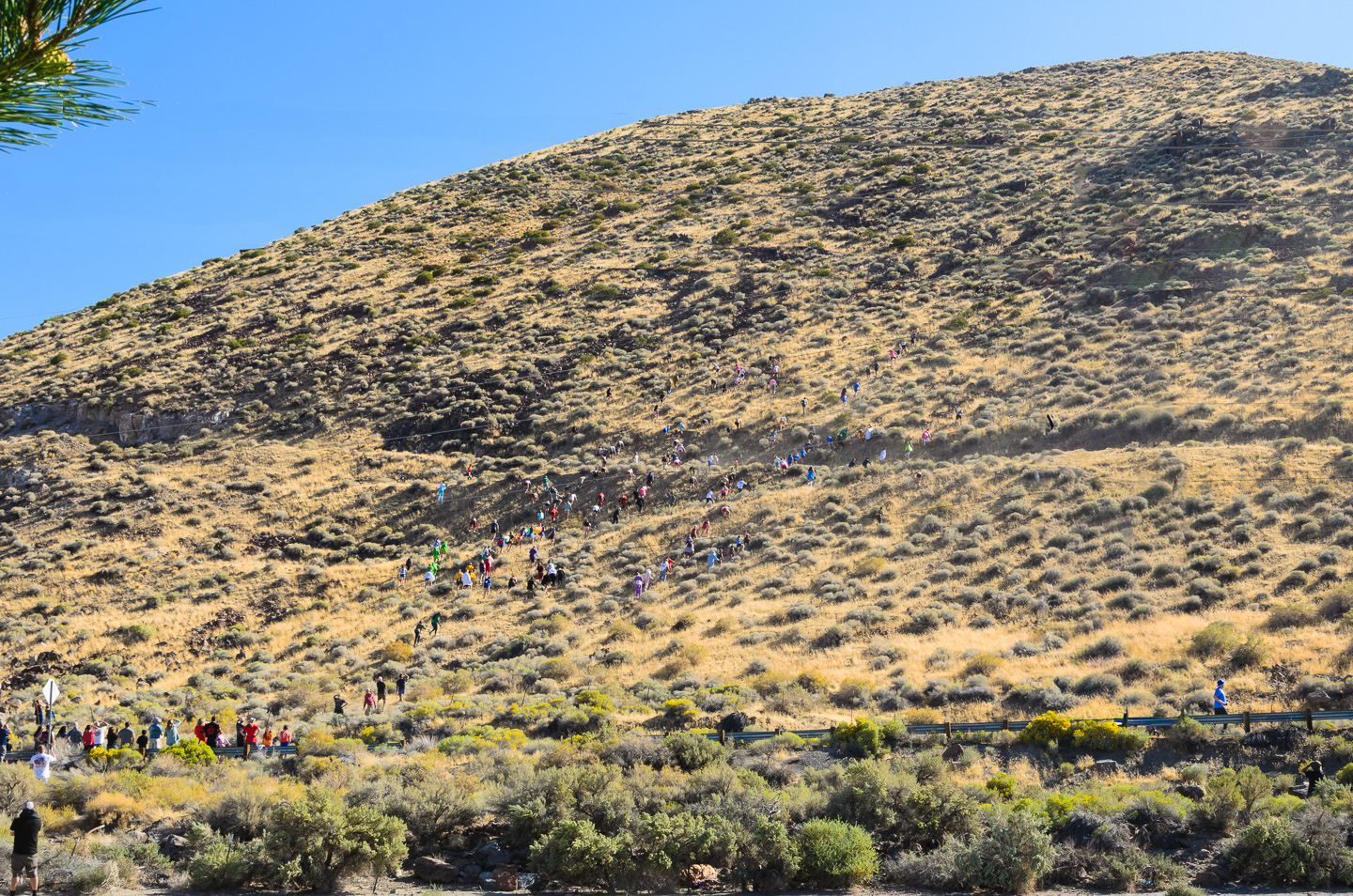 All of the "ants" running up the steep slope at the start of the race. Caleb is one of those tiny specks! |