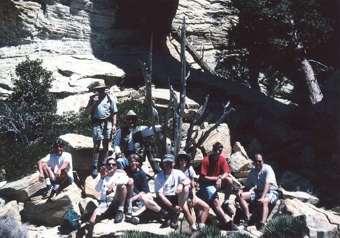 Bob, Jim Germain, and Rick Loop on the South Loop trail after summitting Mount Charleston (August 1998) |