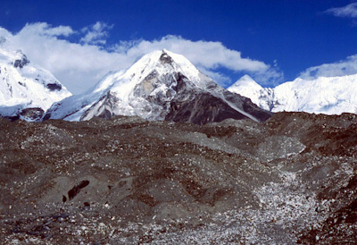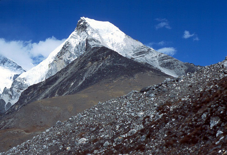 Island Peak from the lateral moraine of the Imja Tse glacier.