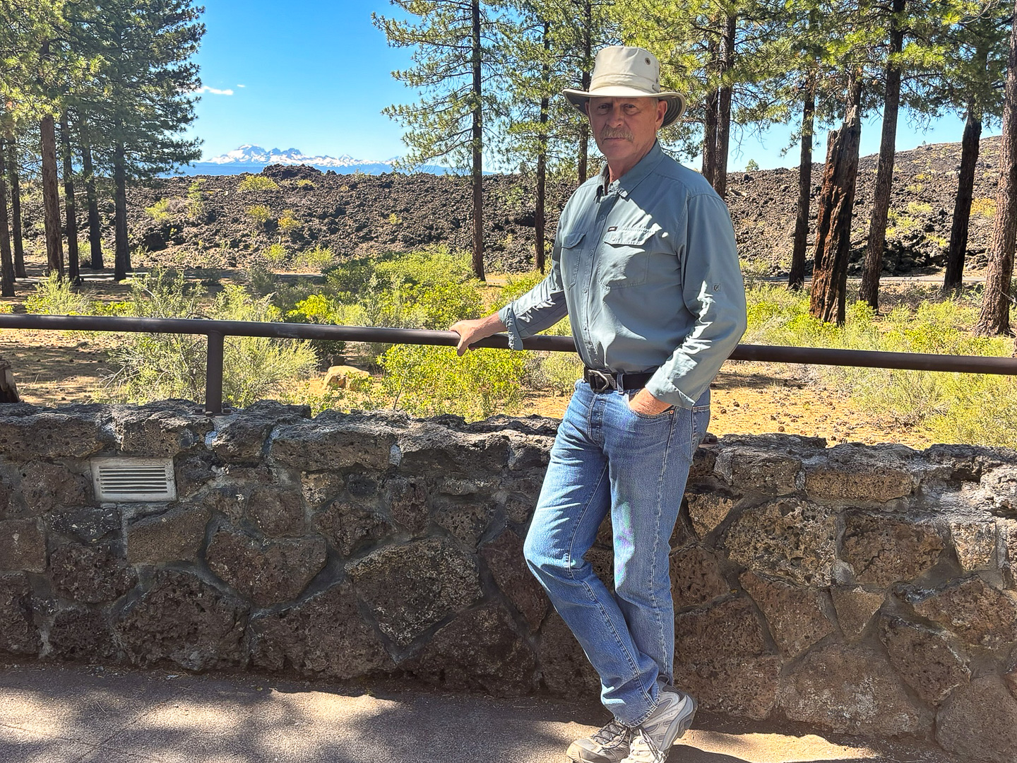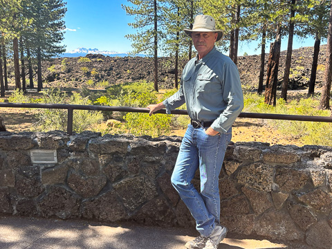 While visiting we also stopped to check out Newberry National Volcanic Monument just south of Bend, Oregon and walk some of the trails around the Visitor Center. In the distance, about 30 miles away, you can see the Three Sisters volcanic peaks. |